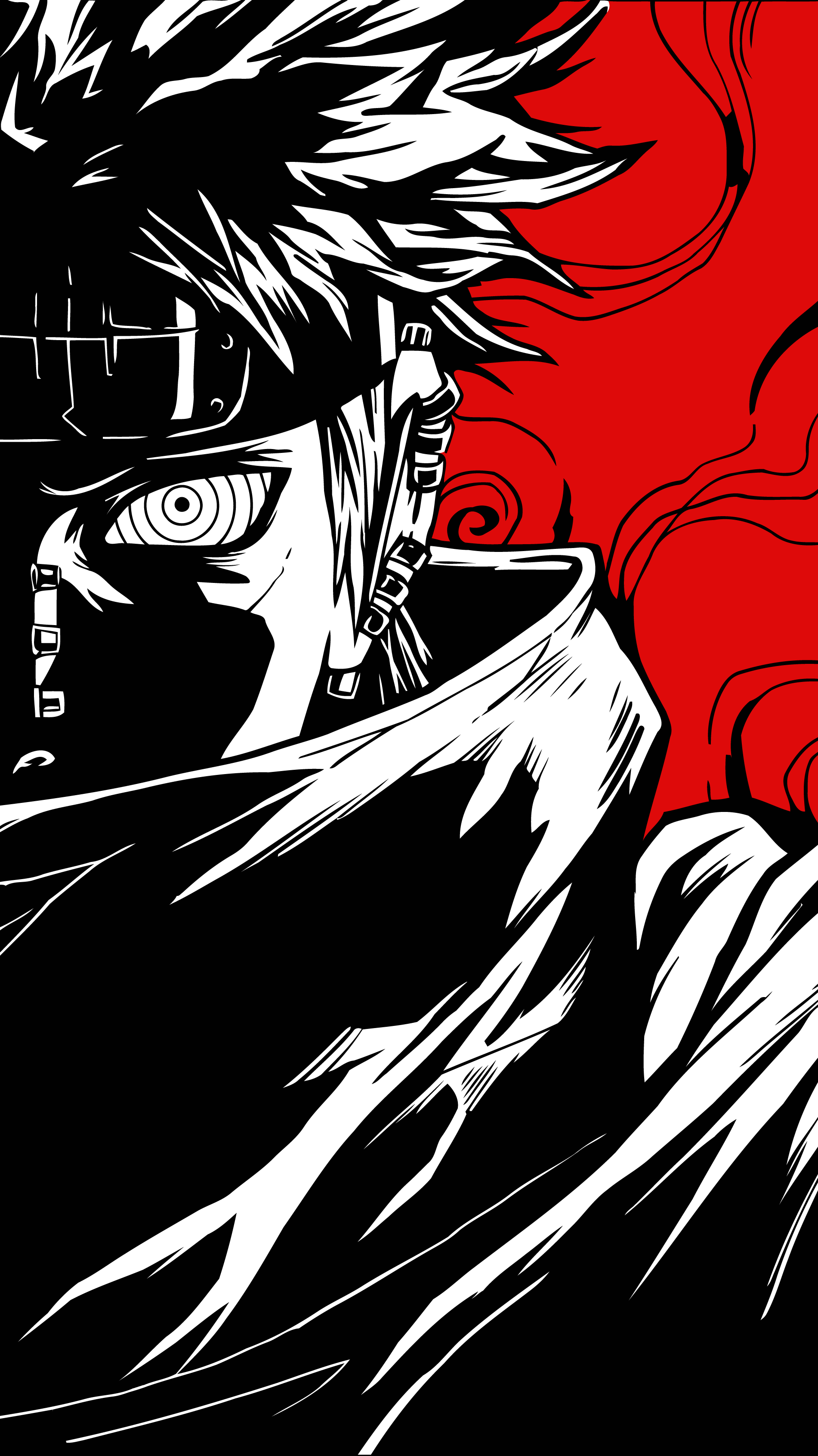 Intense, stylized graphic of Pain (Nagato) from Naruto Shippuden.