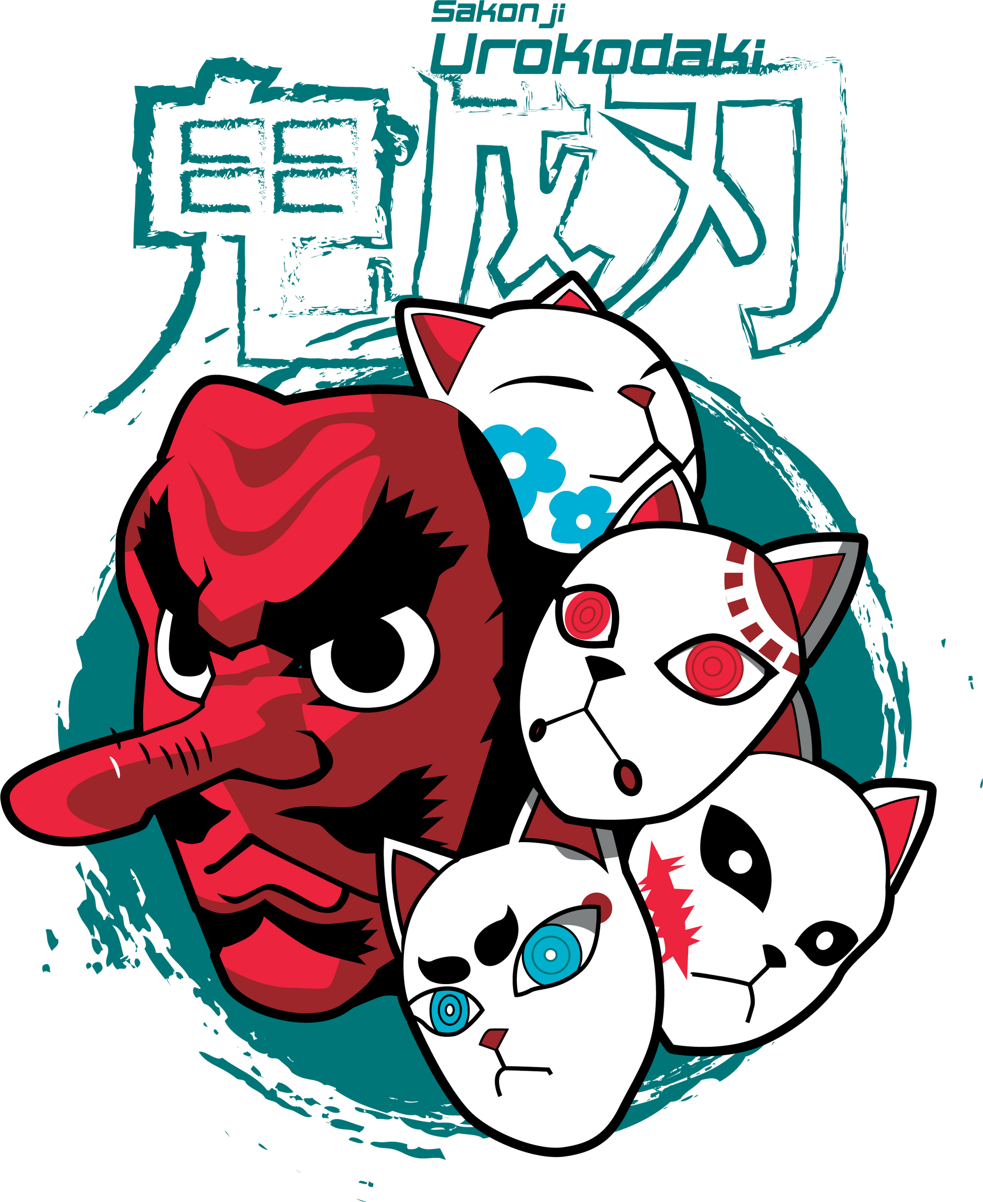 Anime, Manga, Demon Slayer, Kimetsu no Yaiba, Urokodaki, Tengu Mask, Fox Masks, and Water Hashira theme.